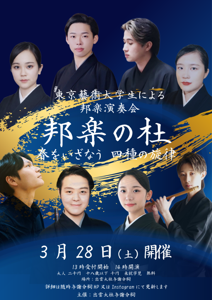 3月28日㈯に、出雲大社与謝分祠にて、邦楽演奏会を開催することが決定しました!