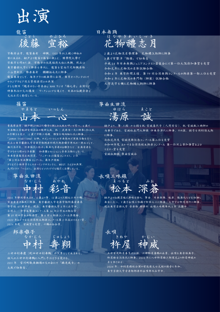 普段触れる機会の少ない、日本の伝統的な音楽や舞を楽しんでいただける演奏会となっております!